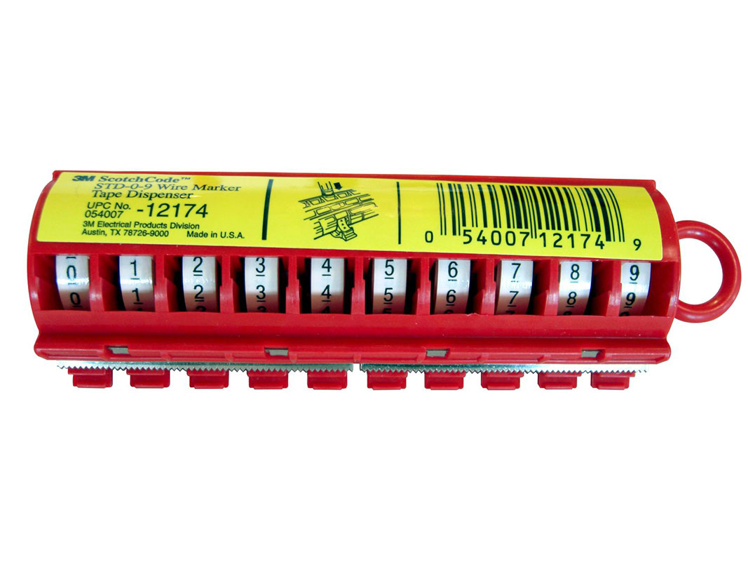 Comes in a compact refillable dispenser, which provides a fast, convenient method for marking wire, cable, sub-assemblies, parts, hoses and terminals. Tape has numbers from 0 through 9. Self adhesive, oil and solvent resistance. 1 lbs (0.5Kg) shipping weight.