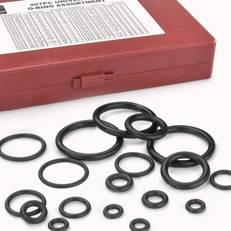 - 13 O-rings each in sizes: 3/8" x 3/32", 7/16" x 3/32", 1/2" x 3/32", 9/16" x 3/32", 5/8" x 3/32", 11/16" x 3/32", 3/4" x 3/32", 13/16" x 3/32", 7/8" x 3/32"